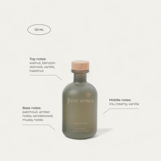 "والنت آيريس" رائحةُ الجوز والسّوسَن التي تمزج بين الحلاوة الخفيفة للمكسرات المحلاة مع أناقة السّوسَن النّاعمة، ملفوفة في دفء خشب الجوز الجاف.